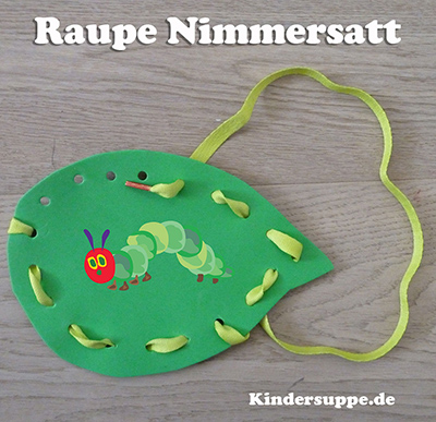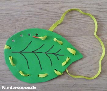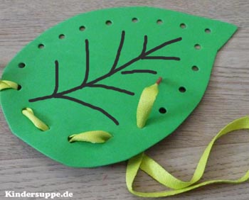 Die Raupe frisst sich durch das Blatt – Fädelarbeit für Kinder