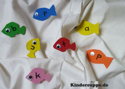 Vorbereitung: Schreiben Sie einen Buchstaben des Alphabets auf jeden Fisch.