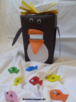 Geben Sie einen Buchstaben vor und lassen Sie die Kinder nach dem Fisch mit dem richtigen Buchstaben suchen und den Pinguin mit diesem Fisch füttern.