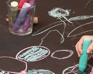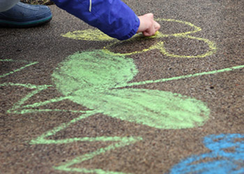 Gehen Sie bei Regen nach draussen und lassen Sie die Kinder mit den Straßenmalkreide auf den Boden zeichnen.