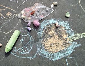Kreide ist ein weißer Kalkstein. Mit Straßenmalkreide den Hof, Parkplatz oder Spielplatz in eine farbenfrohe Spielwelt verwandeln