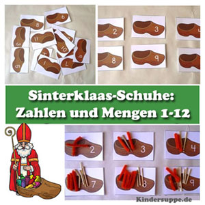 Sinterklaas-Schuhe: Zahlen und Mengen 1-12