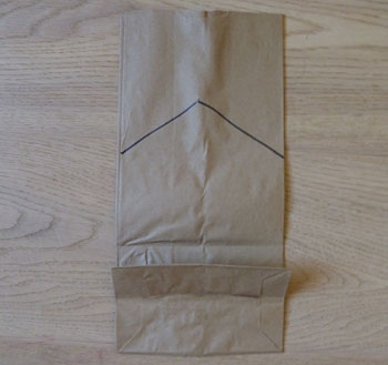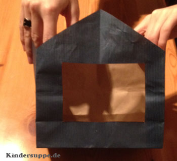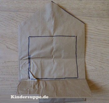 Zeichnen Sie eine Linie für das Dach, an der Oberseite der Papiertüte und schneiden sie der Linie nach aus.