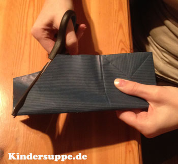 Zeichnen Sie, wie auf dem Bild, ein Rechteck auf die Tüte und schneiden Sie es aus.