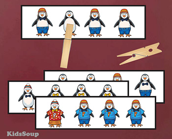 Welcher Pinguin ist anders? Klammerkarten Druckvorlagen