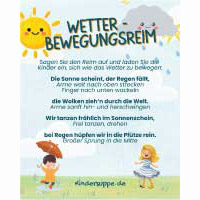 Auf unserer Kindersuppe-Mitgliederseite sind über 90 Bastelideen, Arbeitsblätter, Spiele, Reime und andere Ideen zum Thema Wetter für Kindergarten und Kita erhältlich. Hier sind einige Beispiele: